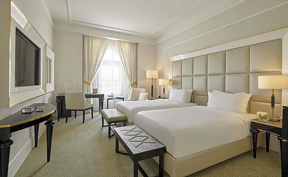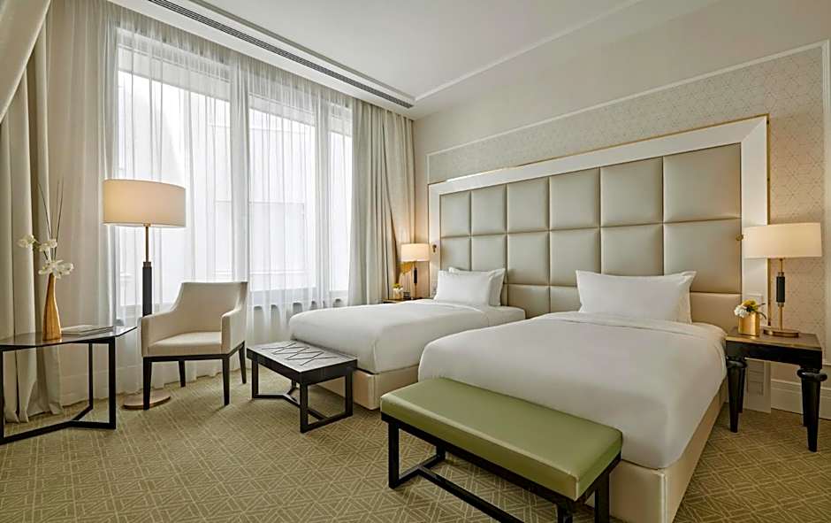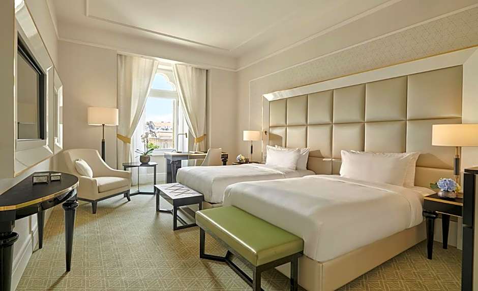 Featuring a historic city view, this 33-115 ft² double room has two twin beds with individually controlled heat and air-conditioning, a seating area, a soundproofing, 49” flat screen Smart TV, a mini fridge, Nespresso coffee machine as well as a marble bathroom with a bathtub and/or rain-forest shower and Terrycloth bathrobes and slippers.