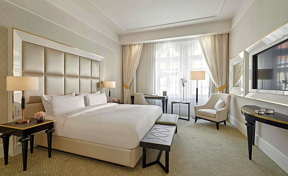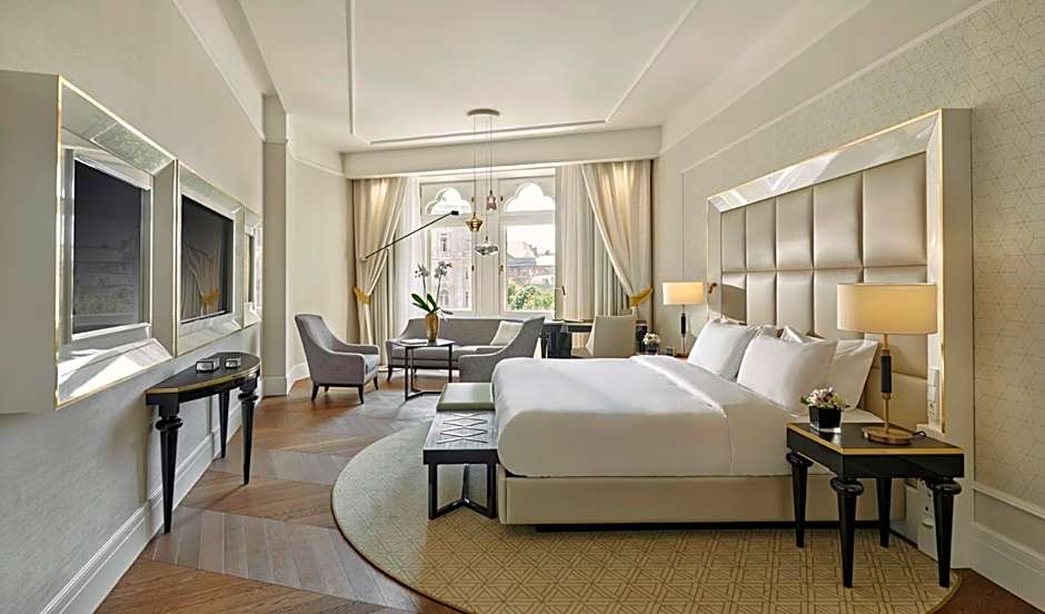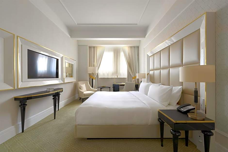 This 31-115 ft² double room has a mini-bar, 49” flat screen Smart TV, Nespresso coffee machine, an elegant seating area, a king bed and a marble bathroom with a bathtub and/or rain-forest shower, as well as Terrycloth bathrobes and individually controlled heating and air-conditioning.