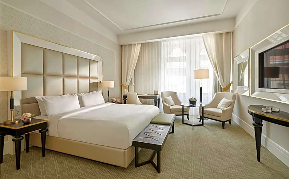 Featuring a historic city view, this 31-115 ft² room has a king bed, a seating area, 49” flat screen Smart TV, a marble bathroom with a bathtub and/or rain-forest shower, as well as Terrycloth bathrobes, Nespresso coffee machine and soundproofing.
